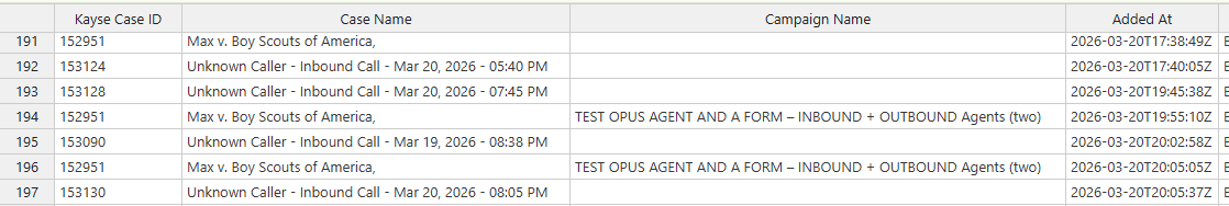 Contact lists can now override default company name and case type values used in campaign communications. When a list with overrides is selected, all AI calls, SMS messages, and emails use the overridden values instead of company defaults.
