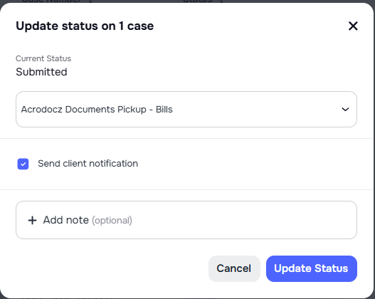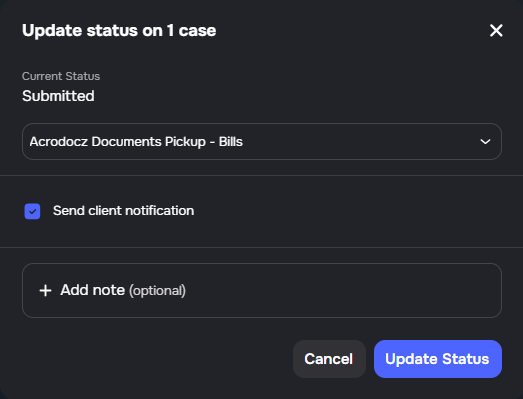 Users can now manage whether clients receive SMS and email notifications when a case status changes by using a dedicated checkbox in settings.