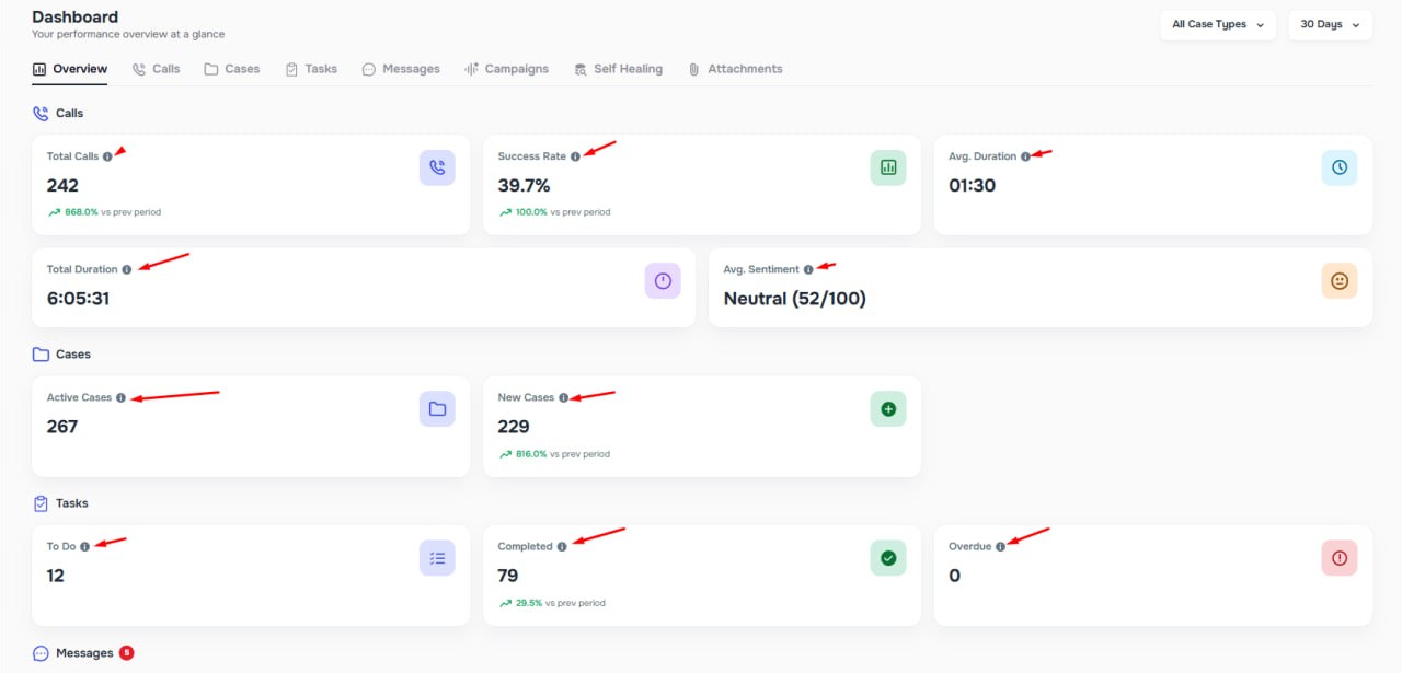 - Search transfers — search across call IDs, contact names, phone numbers, case names, and transfer summaries