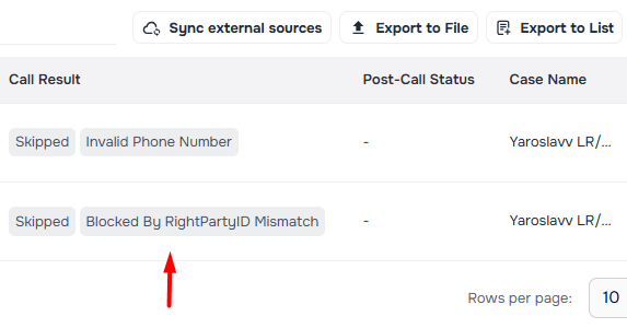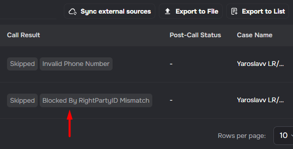 Campaigns now show explicit DNC screening outcomes in call disconnection reasons. When a call is blocked because the phone number is on a Do Not Call list, the UI shows "Blocked by Do Not Call List". When a call is blocked because the contact name doesn't match the registered phone owner, the UI shows "Blocked by RightPartyID Mismatch". These labels replace the previous generic "DNC Blocked" message so you can see the exact block reason.